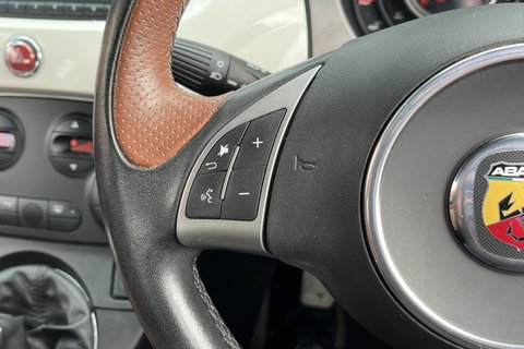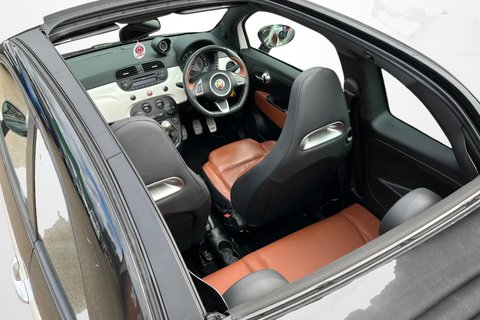 What a great example! here we have a beautifully presented 2013 63 plate Abarth 595 Convertible Turismo, finished in white and black with grey alloy wheels and a stunning brown full leather interior, great colour combo! This car is only 1 Owner from new and has only covered a very low milage of 29,500 miles. if you are after a hot hatch that you can enjoy all year round then look no further! this has a 1.4 turbo charged engine with 160 BHP and 5 speed manual gearbox and is great fun to drive and will certainly put a smile on your face. The vehicle is also very well equipped with electronic climate control air conditioning, full leather bucket seats, quad exhaust system, steering wheel mounted audio controls & much more!